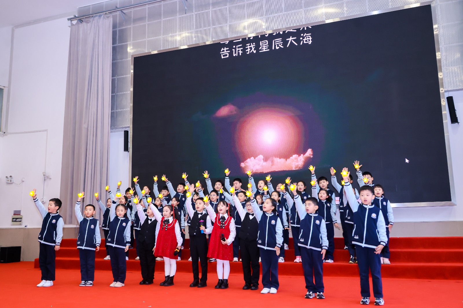 神州大(dà)地驚雷響,火(huǒ)箭轟鳴震四方。心中有夢,眼中有光(guāng),可(kě)上九天,能攬明月,就(jiù)是我們中國(guó)人的星辰大(dà)海。二(4)班帶來(lái)配樂詩朗誦《星辰大(dà)海》。