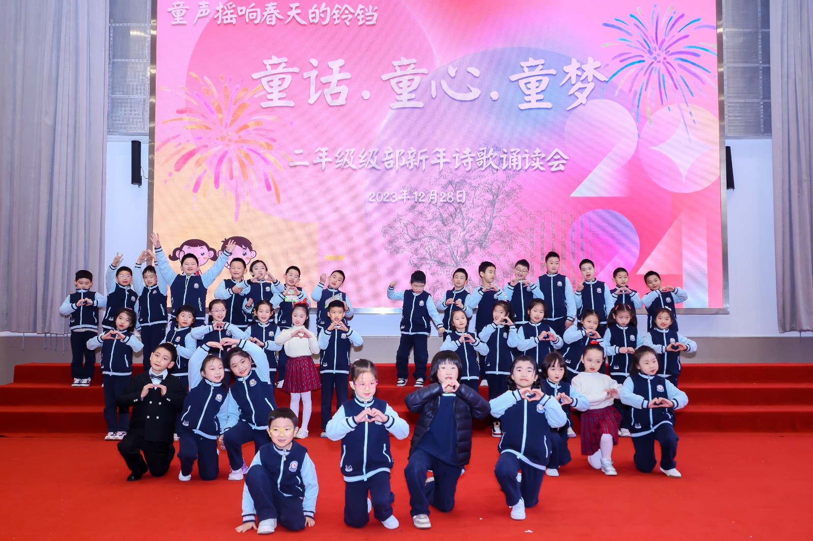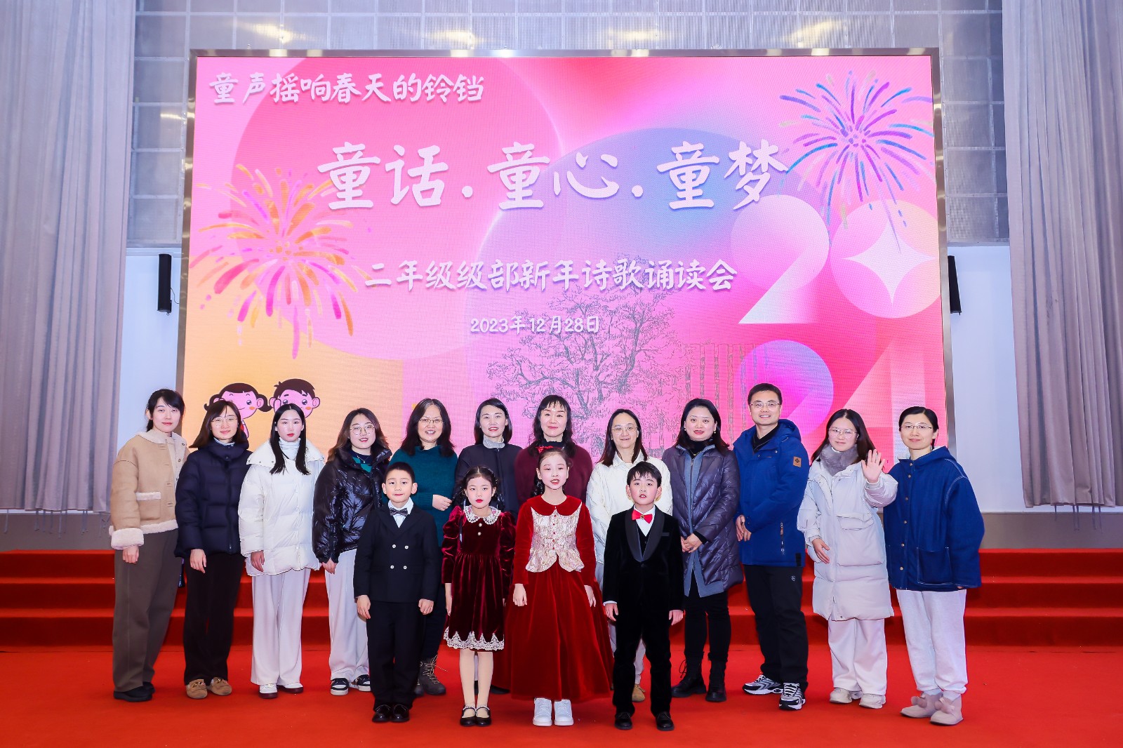 “童話(huà)·童心·童夢”二年(nián)級級部新年(nián)詩會在全場合唱《童年(nián)飛翔》中圓滿結束,大(dà)家在詩歌的樂章(zhāng)中擁抱2024,迎接更美好的明天!